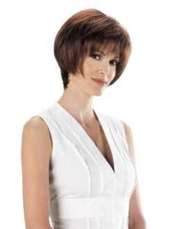 AMALI will make you feel like you just walked out of a high-end salon! A chin-length bob with chipped ends and a great natural flow. The crown has a slight lift that holds the shagged layers just in place. Ultimate Fit cap; adjustable Velcro tabs for fit.